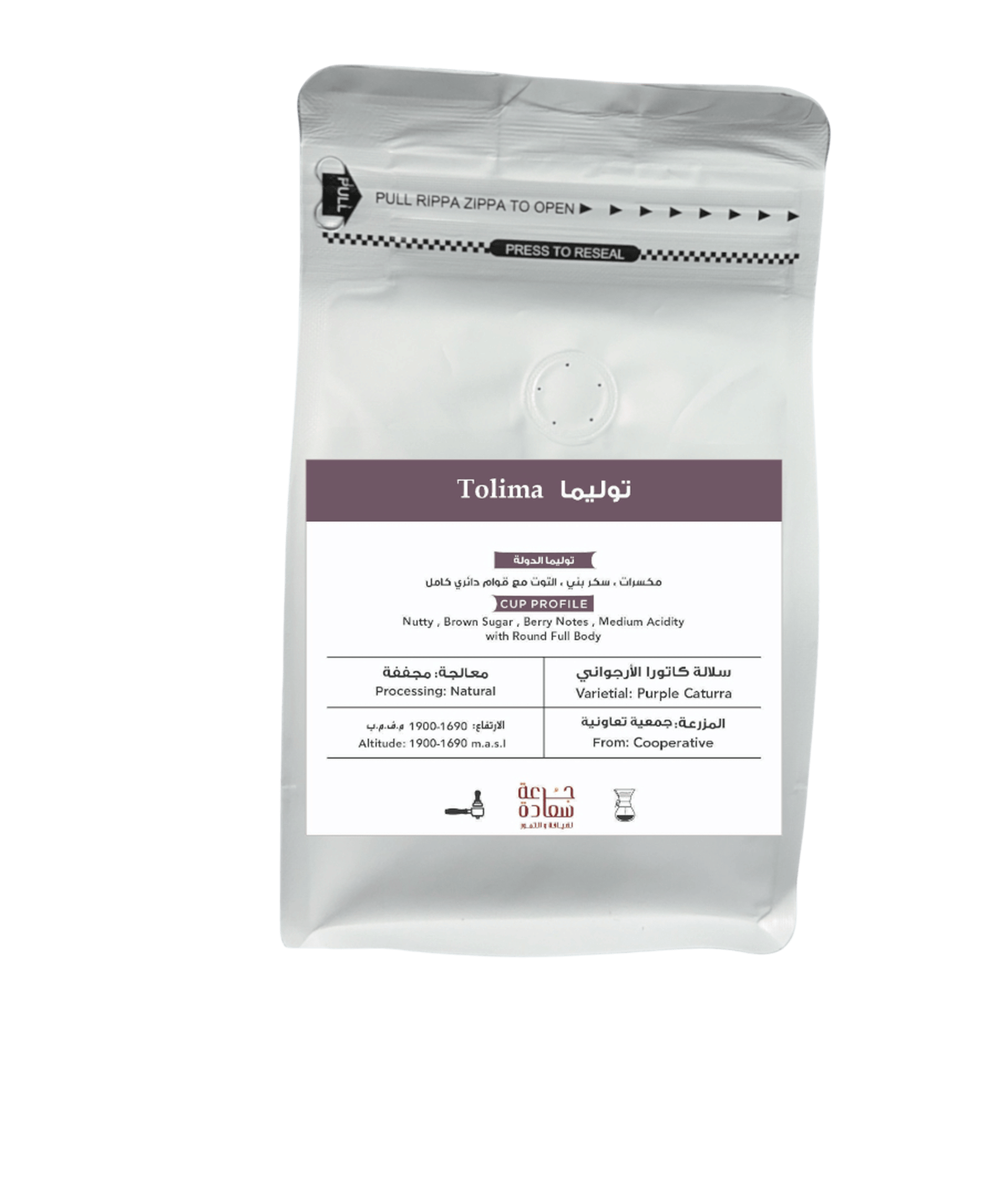 - المنطقة: توليما، منطقة شهيرة في كولومبيا لزراعة القهوة، تُعرف بارتفاعاتها العالية والمناخ المثالي الذي يعزز نكهات القهوة الغنية.