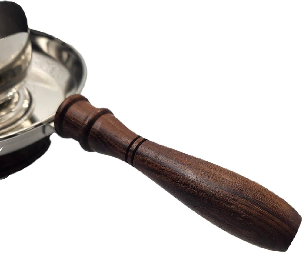 مبخرة عملية وأنيقة مصنوعة من ستانلس ستيل عالي الجودة مع يد خشبية عازلة للحرارة لسهولة الحمل.