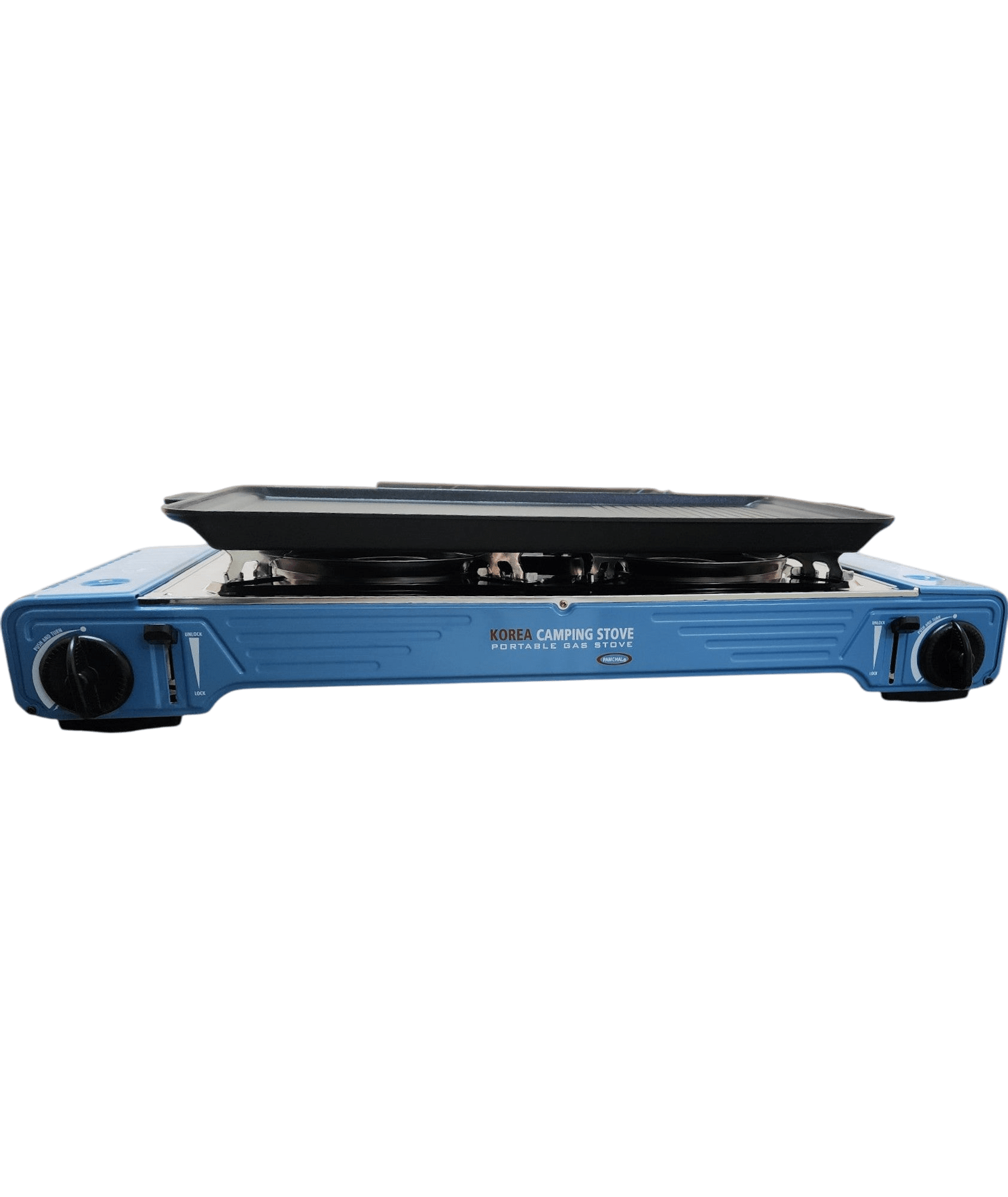 موقد تخييم كوري مزدوج الشعلة بوتان مع شواية شواء