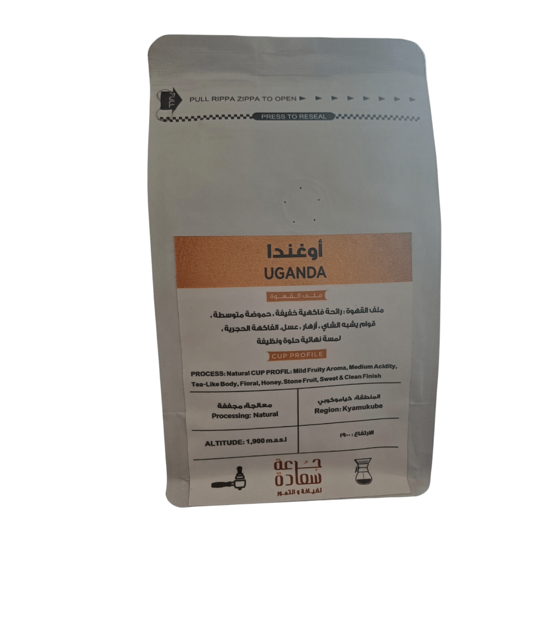 - المنشأ: قهوة من أوغندا، بلد يقع في شرق إفريقيا ويشتهر بإنتاج قهوة عالية الجودة بفضل المناخ المثالي والتربة الخصبة.